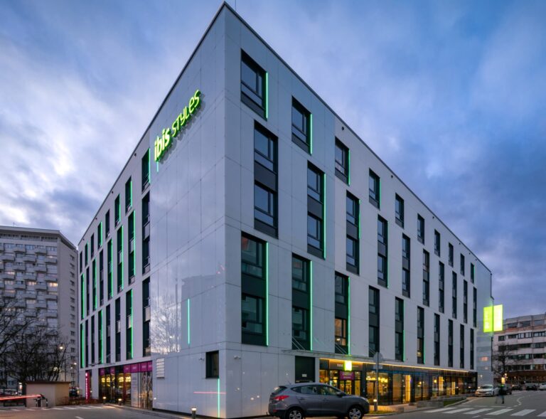 Hotel Ibis to nowoczesny obiekt położony przy ul. Zagórna 1a w Warszawie. Nasza firma miała przyjemność uczestniczyć w projekcie, gdzie naszym głównym zadaniem było dostarczenie i zamontowanie szklanej elewacji ST-System w narożnikach budynku, zapewniając pełną kompatybilność z resztą elewacji.